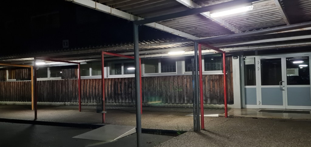 Nächtliche Tour durch eine Schule – nach einem Open-Air-Genuss – ohne Schüler und nachts ein seltsam fremder Ort.
