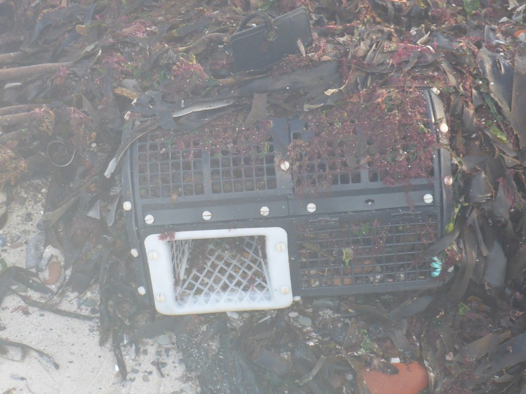 Mittendrin finden sich zwei losgerissene Reusen für den Hummerfang,